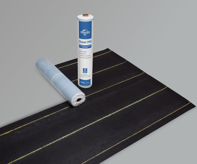 Westlake Royal Building Products, a Westlake company, has introduced Citadel PRO, a self-adhered poly-coated base sheet that provides protection and simplified installation for roofers when compared to mechanically fastened base sheets. Citadel PRO, which will be available in the Florida market, features a styrene-butadiene-styrene (SBS) modified asphalt core that self-seals around nail or screw penetrations to offer increased leakage protection. Citadel PRO is equipped with an easy-to-use peel-and-stick application to maximize deck adhesion and a poly-coated top surface for increased cap sheet adhesion. This eliminates the need for special tools or hot asphalt in the adhesion process while also providing superior moisture resistance and thermal stability. The poly-surface provides excellent foot traction and offers up to three months of UV resistance. Citadel PRO has been tested and certified to meet ASTM D1970 standards and Florida Building Code for both HVHZ and non-HVHZ regions as listed in FL14317; it is available in 3-foot by 66.7-foot rolls covering 200 square feet.