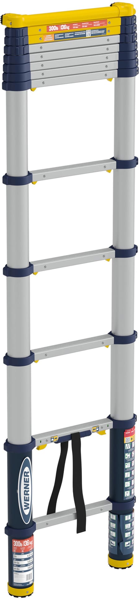The new Telescoping Ladder is a professional-grade telescopic ladder that features a superior locking system and speed-controlled lowering. The ANSI-approved type 1A duty rating supports up to 300 pounds and is engineered for safety and stability. It extends smoothly, one rung at a time, up to 12.5 feet and features speed-controlled lowering to prevent finger injuries, ensuring both safety and ease of use. The ladder enables safe and convenient work at height, while the compact design makes it easy to store and transport. The reinforced rung-to-rail connection provides durability and stability with reduced bound, twist, and sway. Retracts to a 35-inch compact height and features an attached strap and integrated handle for easy, one-handed carrying. Compact and space-saving design fits into small spaces and vehicles.